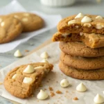 9. The finishing touches While still hot, quickly press extra white chocolate chips onto the surface if desired—they’ll melt slightly and adhere beautifully. Let the cookies cool on the baking sheet for 20 minutes to finish setting and develop those perfect crispy edges.