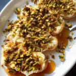- Sprinkle the chopped or crushed pistachios on top of the cheese.
