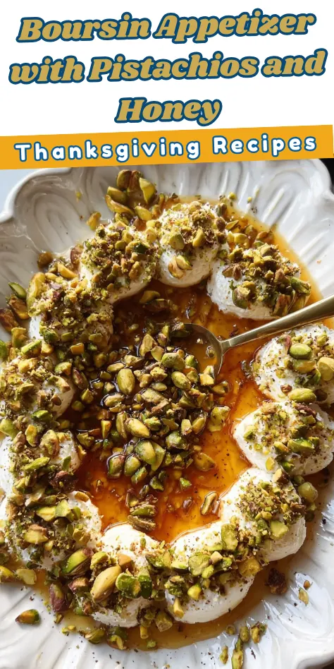 Boursin Appetizer with Pistachios and Honey is a simple and delicious dish that can brighten up any gathering. This appetizer combines creamy Boursin cheese with crunchy pistachios and a drizzle of sweet heat from hot honey. It is perfect for parties, game days, or just a casual snack. Everyone will love this blend of flavors and textures.