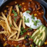 - Toppings: shredded cheddar or pepper jack, sour cream or plain Greek yogurt, avocado slices, fresh cilantro, lime wedges, sliced jalapeños, and crushed tortilla chips.