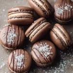 Indulge in these elegant Dark Chocolate Sea Salt Macarons, featuring a rich chocolate shell filled with smooth ganache and a hint of sea salt, perfect for any occasion.