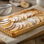 The secret to this tart’s incredible appeal lies in those little details that make all the difference: sprinkling sugar under the puff pastry for that extra-crispy base, arranging the apple slices in those classic overlapping rows, and that final brush of butter that creates the most gorgeous golden finish. At 340 calories per serving (before that absolutely essential scoop of vanilla ice cream), it’s a dessert that feels indulgent without being overwhelming.
