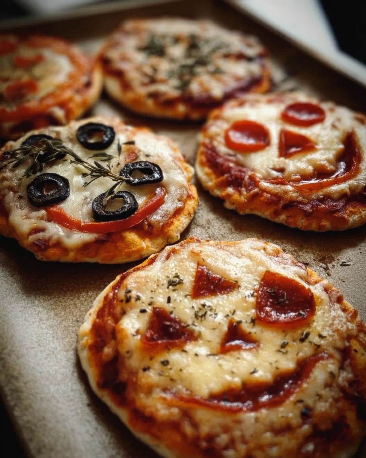 9. Serve and Enjoy: Once baked, carefully take the mini pizzas out of the oven. Let them cool for a minute, and then serve warm. Enjoy your spooky Halloween treat!
