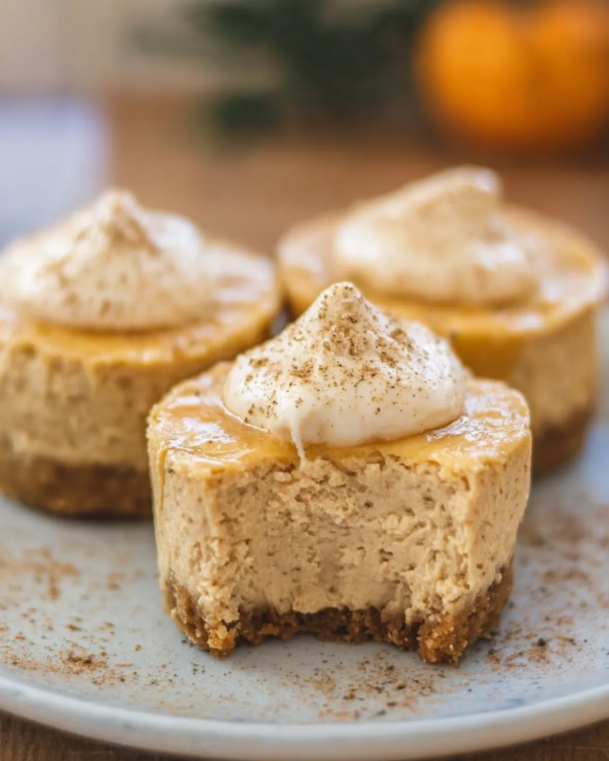 You will love this recipe for several reasons. First, it employs pumpkin, which is a superfood packed with vitamins, fiber, and antioxidants. Using Greek yogurt instead of heavy cream keeps the cheesecake creamy while reducing fat. The sweetener can be honey or maple syrup, both of which are natural options. The spices, like cinnamon and nutmeg, add warmth and depth to the flavor. Plus, these cheesecakes are easy to make, and they fit into many dietary preferences, including gluten-free options.