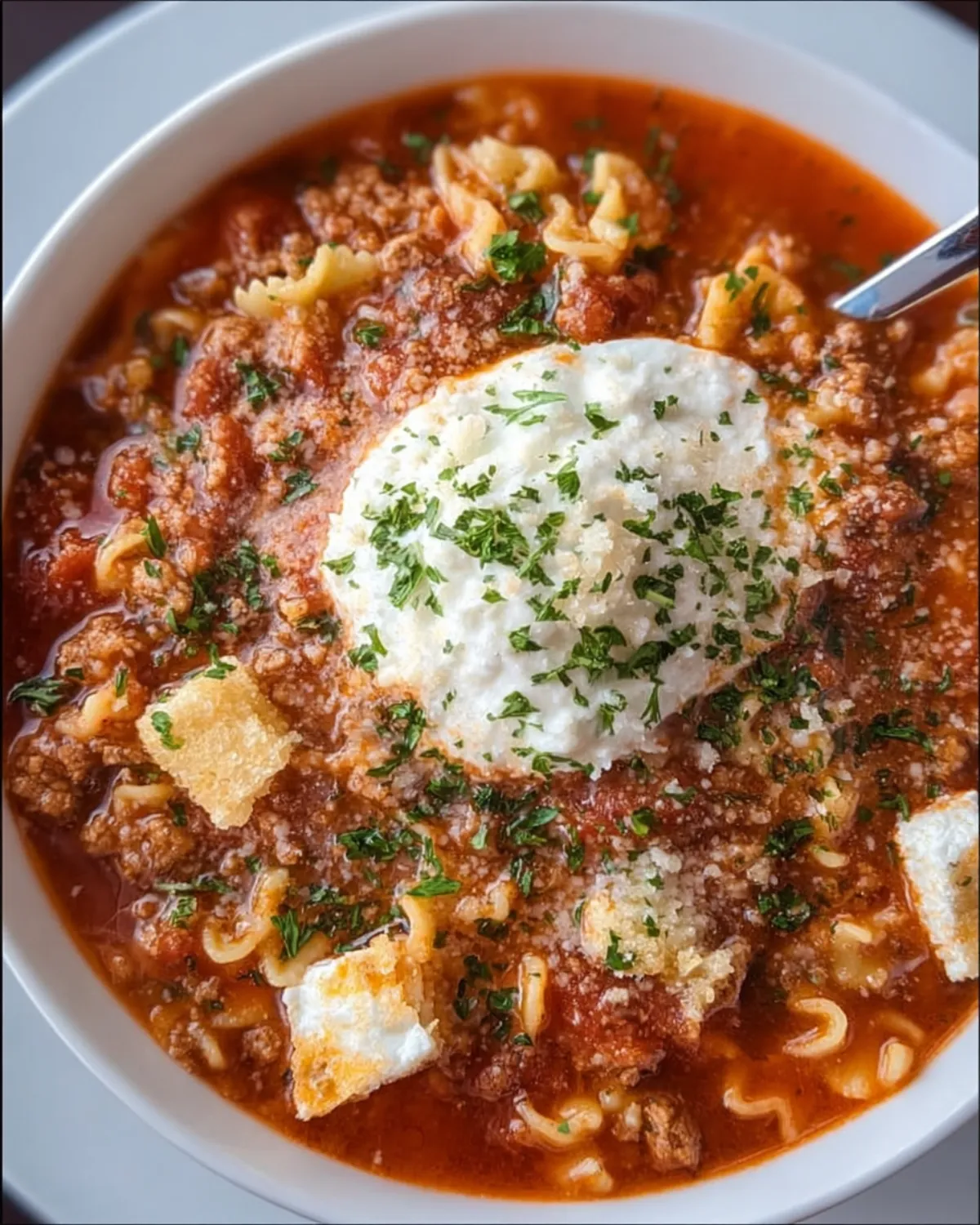 High Protein Lasagna Soup can be served in many ways. It is best enjoyed hot right after cooking. You can serve it with crusty bread or a side salad for a complete meal. The melted cheese on top makes it hearty and satisfying. You might also like to sprinkle some extra Italian seasoning or fresh herbs on top before serving to enhance the flavor.