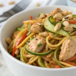 This peanut zucchini noodle salad with chicken has become one of those recipes that I make again and again, especially during busy weeks when I need something quick, healthy, and absolutely delicious. There’s something so satisfying about a meal that comes together this quickly but delivers such complex, restaurant-quality flavors.