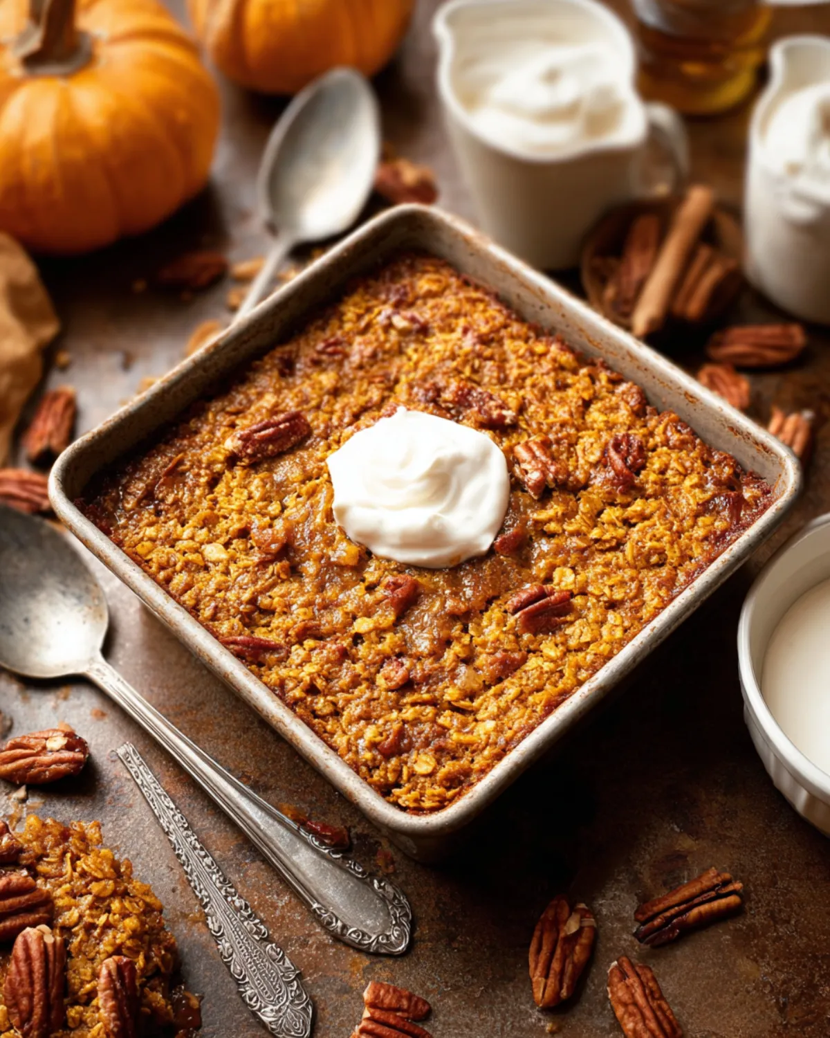 Pumpkin Baked Oatmeal is a warm, comforting dish that brings together the goodness of oats and the rich flavor of pumpkin. It is a wonderful way to start your day or enjoy a lovely snack. This recipe is not only simple but also healthy. It is perfect for breakfast, brunch, or even dessert. With its cozy flavors and easy preparation, Pumpkin Baked Oatmeal is sure to become a favorite in your home.