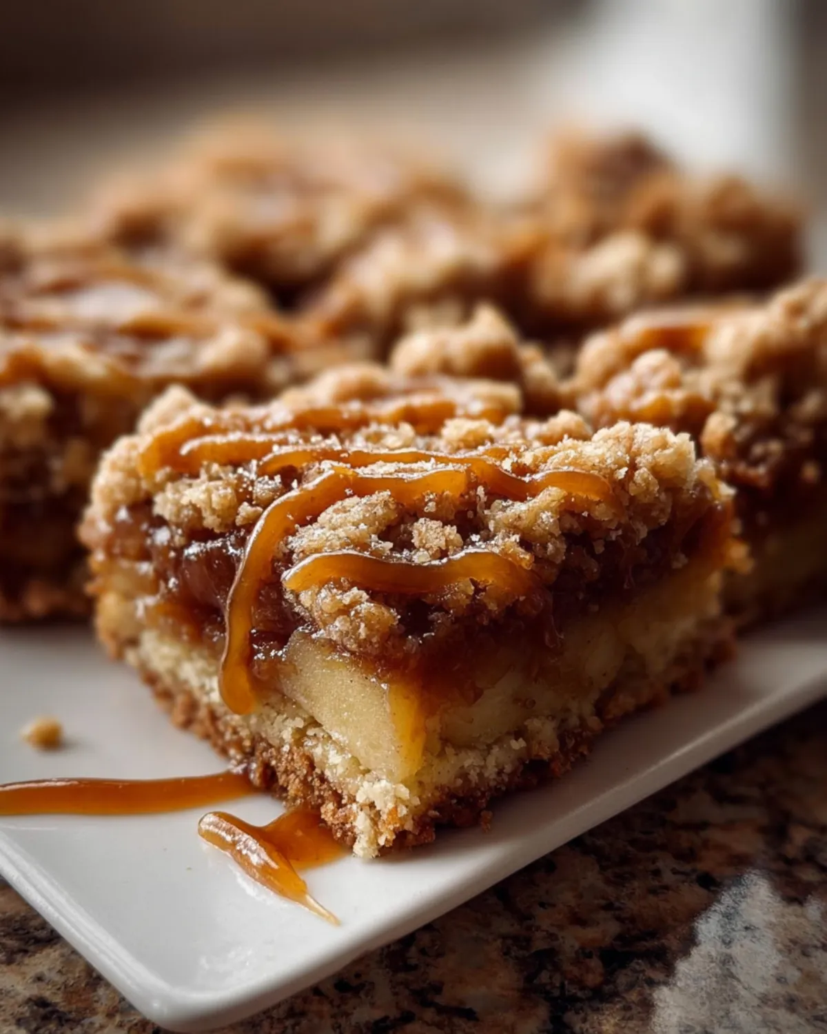 - Drizzle the salted caramel sauce over the apples. This adds sweetness and richness to the bars.
