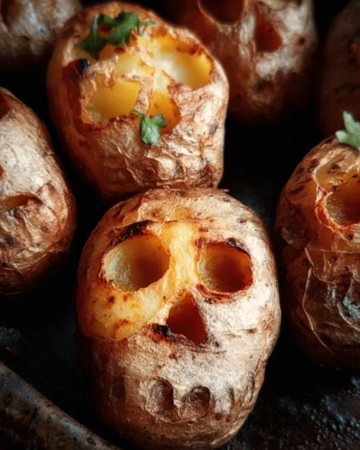 - Cheesy Skull Potatoes: Add shredded cheese on top of the potatoes before baking. The cheese will melt into a delicious topping.