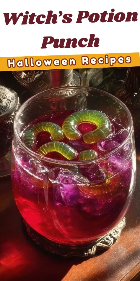 Witch’s Potion Punch is a fun and spooky drink that is great for Halloween parties or any themed gathering. This punch is full of fruity flavors and has a fizzy twist. It is easy to make and perfect for all ages. With its vibrant colors and gummy worm garnish, this punch will surely be a hit. Whether you are throwing a big Halloween bash or a simple family get-together, this Witch’s Potion Punch will add a special touch to your event.